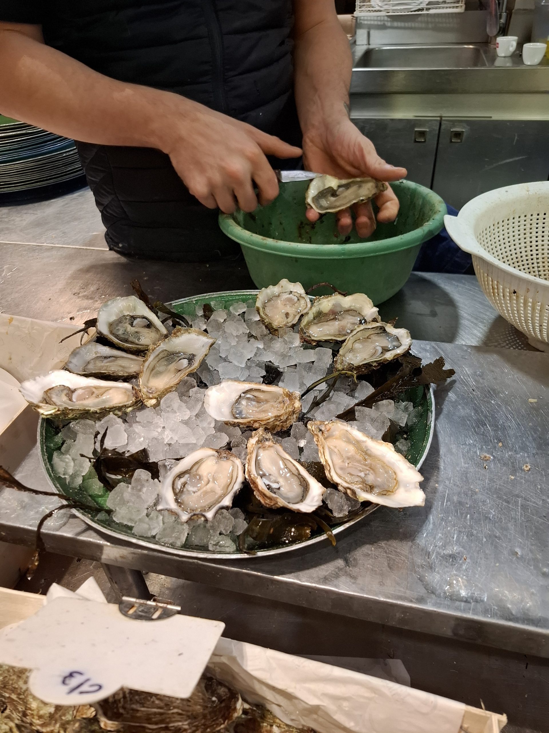 Käse-Dégustation (mit sehr gutem Altesse aus der Savoie) bei Mons Fromager, dann Austern. Und Champagner.
