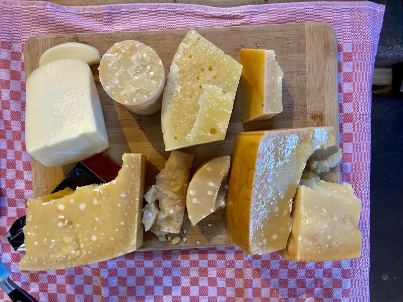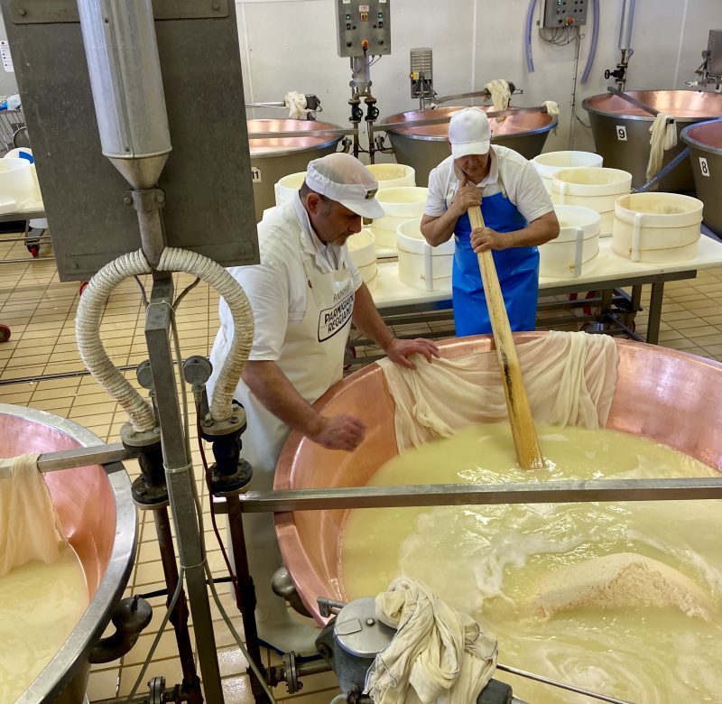 Das Consorzio ist der gestrenge Verein, der darüber wacht, dass Parmesan tatsächlich Parmesan ist – was wie bei allen Vereinen gelegentlich leicht skurrile Züge annimmt und in dem Bestreben, die wirtschaftliche Solidität sicherzustellen, die unglaubliche Vielfalt dieses Käses gelegentlich etwas verschleiert. Das Gebiet ist groß, der Westen der Emilia-Romagna, im Norden auch darüber hinaus, vereint die Berglandschaft des Apennin mit der Ebene des Po, was auf rund 3000 Höfe zu Milch wird (schwarzweiße Kühe, rote Kühe, weiße Kühe…) und in beinahe 300 Käsereien wiederum zu Käse.