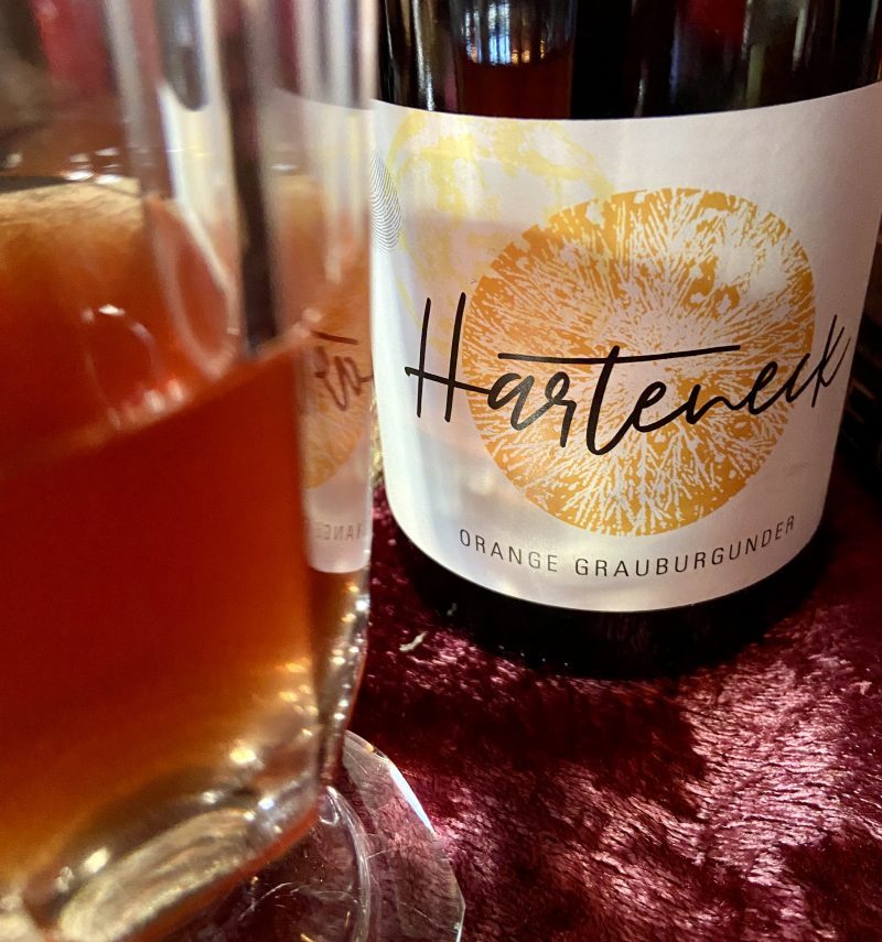 Der Wein kommt zum Ausgleich von einem wirklich kleinen, super nachhaltig arbeitenden Weingut, das Euch bereits vertraut ist: Thomas Harteneck hat Euch an dieser Stelle bereits seinen Spätburgunder eingeschenkt. Er arbeitet mit knapp zehn Hektar von Löss, sandigem Lehm, verschiedenen Kalksteinarten und Quarzit geprägten Böden in und um Schliengen, zwischen Rheintal und Schwarzwald, Elsass und Schweiz, und wie seine Weine wirkt auch er selbst geerdet, ein Mensch, der angekommen ist und dabei doch sehr wach. Heute von ihm, zum Gammel Knas, der 2022 Orange Grauburgunder.