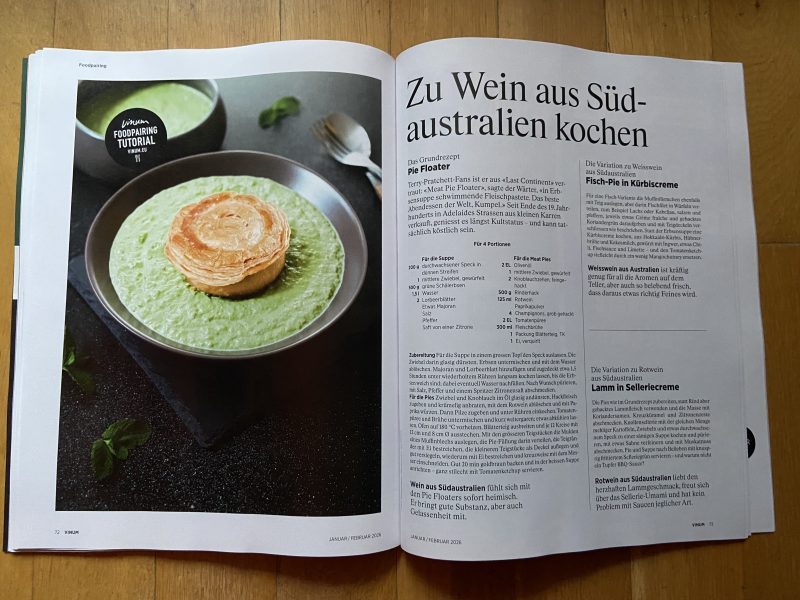 Von meiner Wenigkeit noch der Hinweis auf (sonnige!) Weine aus Südaustralien beziehungsweise Rezepte dazu, in der aktuellen Vinum, auf den nächsten HeinzelcheeseTalk, am 20.02. (Einladung kommt) und die Bitte um ein ganz klein bißchen länger Geduld, was die Heinzelcheese-Exkursionen betrifft. Ich warte noch auf die letzten Rückmeldungen – aber dann. Denkt dran, auf viel Grau folgt irgendwann wieder Sonne, Käse hilft, und Wein auch. Passt auf Euch auf!