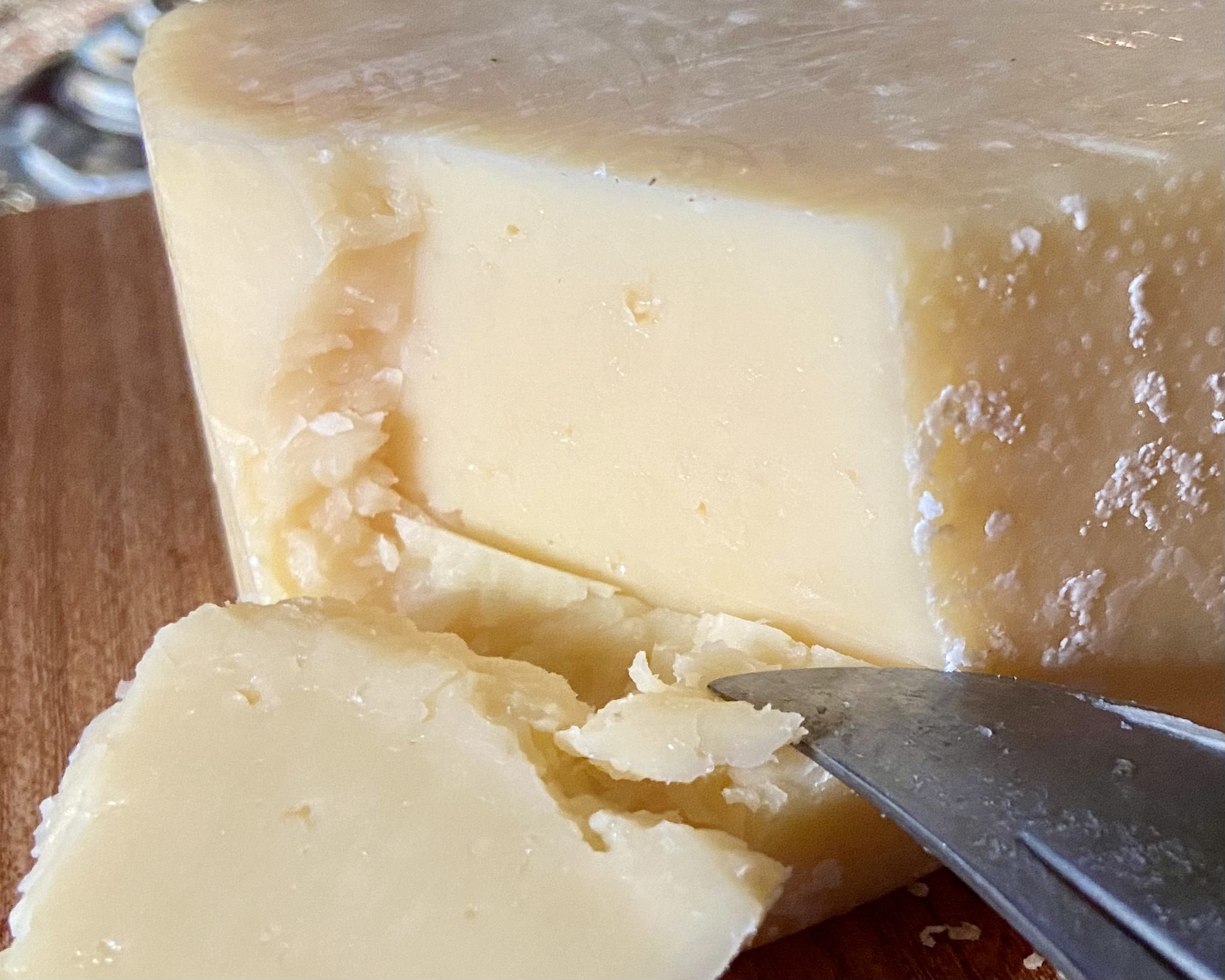 Der Käse heißt Gammel Knas, alter Kerl, und kommt von Arla. Diese ursprünglich dänische Molkereigenossenschaft ist längst zum Multinational-Giganten angeschwollen, liegt auf Rang Sechs der internationalen Molkerei-Unternehmen und produziert in 12 Ländern weltweit. Also nicht gerade ein Kandidat für die Cheese Berlin ;) Und doch ist natürlich nicht alles schlecht in Arla-Land, vor allem, wenn man bedenkt, dass die Historie der dänischen Landwirtschaft eine stark industrialisierte ist. Deshalb: dieser „alte“ Käse. Es heißt, ein Käsemeister habe einen gereiften Havarti im Visier gehabt. Havarti: dänischer Klassiker, Schnittkäse, dem Tilsiter sehr ähnlich, aber meist ohne die rotgeschmierte Naturrinde. Normalerweise um einen Monat alt, also jung. Gereifte Version besagten Meisters kam dann wohl nicht so gut an, worauf größere Mengen des Versuchs in einer Ecke des Lagers verschwanden… bis sie jemand nach zwei Jahren, also richtig langer Zeit, wieder hervor zerrte. Da war er richtig gereift, hatten sich Kristalle außen und innen gebildet, war der Teig nicht mehr elastisch, sondern mürbe, das Aroma… ein Wunder. Das jetzt längst systematisch produziert wird.