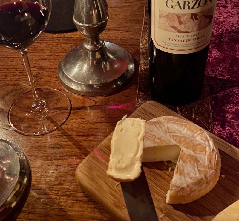 Der Wein dazu ist dann richtig rot, 2022 Tannat de Corte von Garzón aus Uruguay. Auch ein neuer Ring, weil ich im März nach Montevideo fahre, um von der Stadt am Rio de la Plata aus die Käse und Weine dieses südamerikanischen Landes zu erkunden. Ich bin gespannt und aufgeregt und freue mich sehr, die Ergebnisse dann beim nächsten Heinzelcheesetalk (10. April – Einladung folgt!) mit Euch zu teilen. Die Rebsorte Tannat stammt ja (wie so vieles in Uruguay) ursprünglich aus Europa, wo sie am französischen Fuße der Pyrenäen als Madiran alteingesessen ist. Dunkel, gerbstoffreich – und dann doch in den richtigen Händen von einer so betörenden, geradezu an Himbeeren erinnernden Frucht geprägt, das Rilke seine helle Freude gehabt hätte. In diesem Wein sorgt außerdem ein kleiner Teil Marselan, Petit Verdot und Cabernet Franc für zusätzliches Spiel. Dem Roten Milan gefällt das ausgesprochen gut! Den Wein gibt es unter anderem hier.