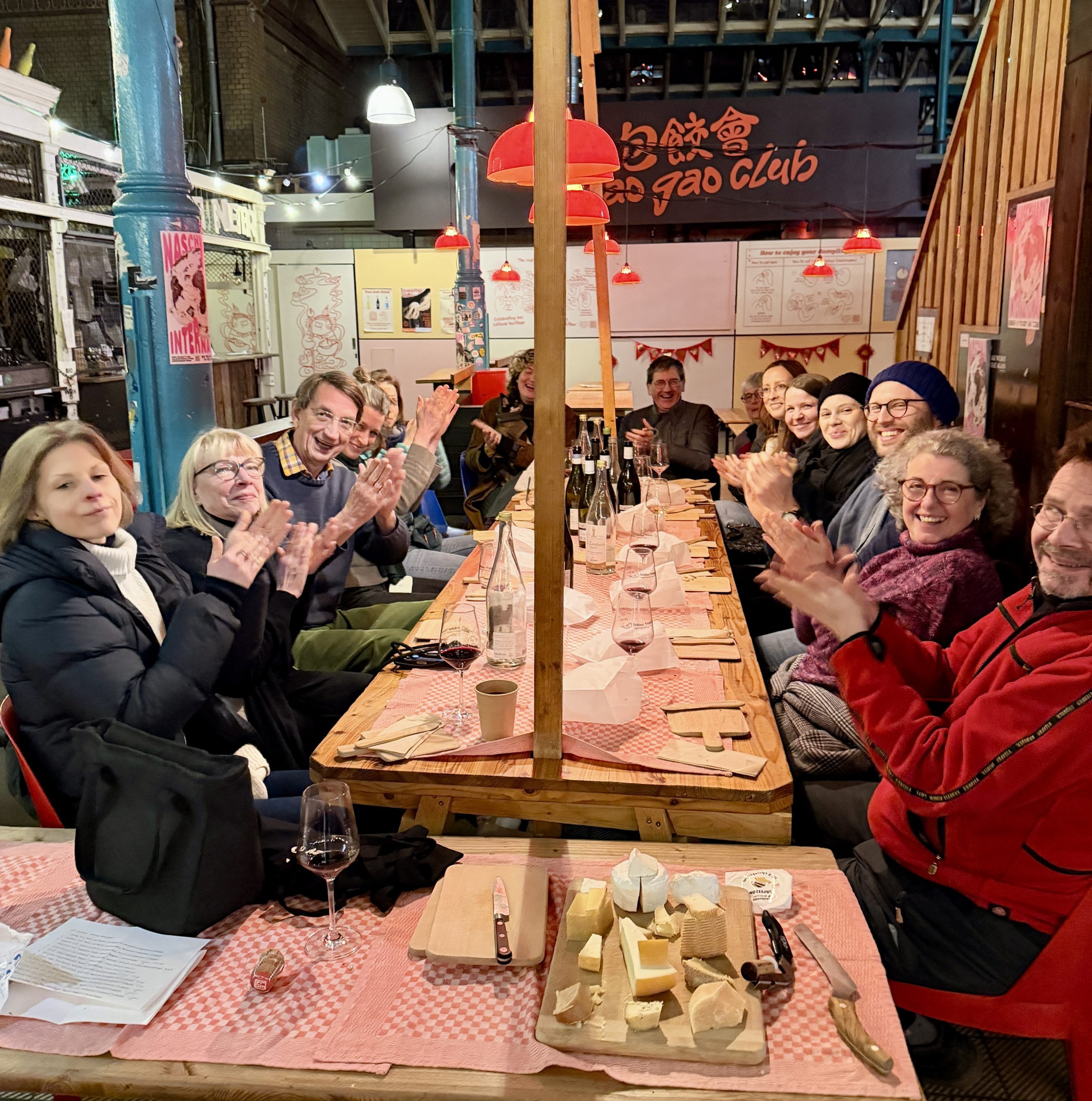 HeinzelCheeseTalks finden rund einmal im Monat an einem Freitag um 18h in der Markthalle Neun in Berlin-Kreuzberg statt, an dem langen Tisch gegenüber vom Suff-Weinstand. Ich bringe spannende Käse mit, öffne ein paar Flaschen Wein, wir verkosten, reden, diskutieren, alles ganz entspannt (und größtenteils auf deutsch – obgleich wir es im allgemeinen auch schaffen, den einen oder anderen auf englisch oder französisch “mitzunehmen”). Die Einladung geht etwa zehn Tage vorher an alle Abonnenten, die sechzehn Plätze am Tisch werden auf Reservierung per Email vergeben, die meinerseits spätestens am Samstag vor dem HeinzelCheeseTalk schriftlich bestätigt wird. Ich freue mich über einen freiwilligen Kostenbeitrag von fünfundzwanzig Euro pro Käsegenießer (bar am Ende des Abends), wenn’s extra viel Spaß gemacht hat, dürfen es auch ein oder zwei Euro mehr sein… cheesio – damit die Welt zusammenhält, beziehungsweise zusammen findet.